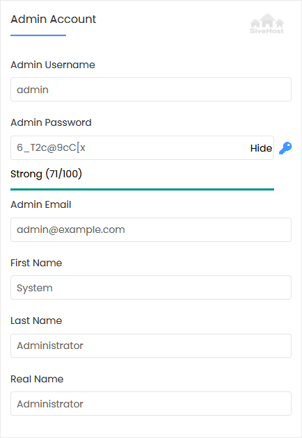 • Admin Email: Your e-mail address.