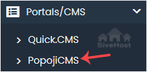 4. On the left side, locate the Portal/CMS category. Click on it and then on the PopojiCMS link that appears.