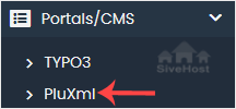 4. On the left side, locate the Portal/CMS category. Click on it and then on the PluXml link that appears.